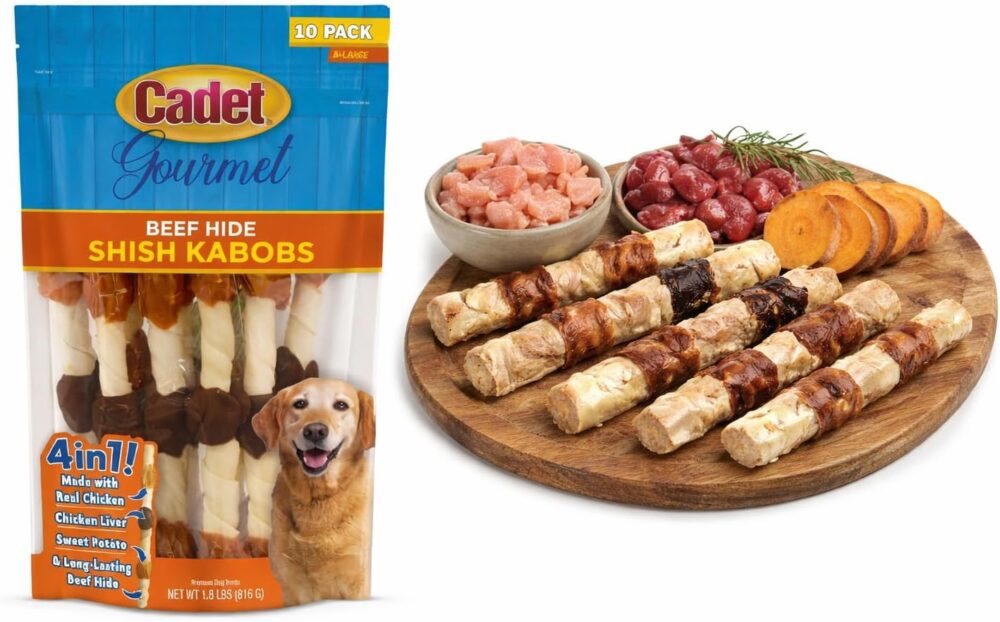 Cadet X-Large Dog Treat, 4-in-1 Beef Hide Shish Kabobs, 10 ct